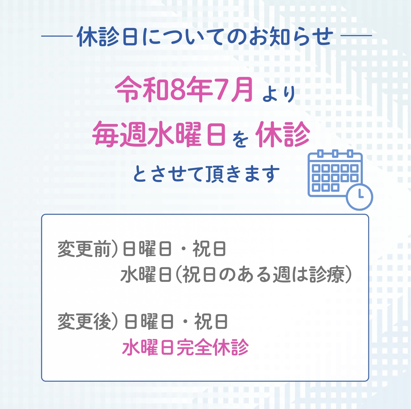 ご都合が悪くなった場合は、必ずご連絡をお願いいたします。無断キャンセルが続く場合、次回のご予約が取りづらくなることがあります。